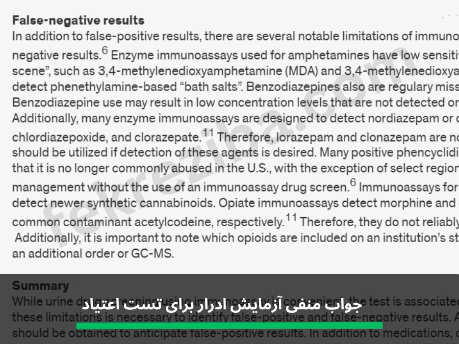 بعضی از داروهایی که مصرف می‌شن بدون اطلاع از عوارضش نتیجه تست اعتیاد رو به سمت مثبت کاذب سوق می‌دن. یعنی اصلا طرف مواد نزده ولی تستش مثبت درمیاد و همه چی خراب می‌شه.